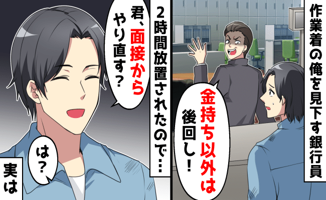 作業着で窓口に行ったら「あなたは後回し!」と言われ…見た目で人を判断する銀行員の末路