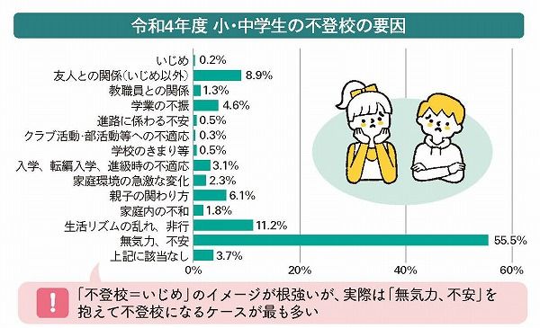 埼玉県が令和5年11月に発表したデータによると、県内の不登校児童・生徒数はここ数年右肩上がり。これまで経験したことのないコロナ禍を経て、子どもたちを取り巻く環境が激変したことも要因の一つで、コロナ禍以降に不登校になってしまった児童・生徒のほか、登校はできるけれど、さまざまな理由から教室に入れないといったケースもあるようです。