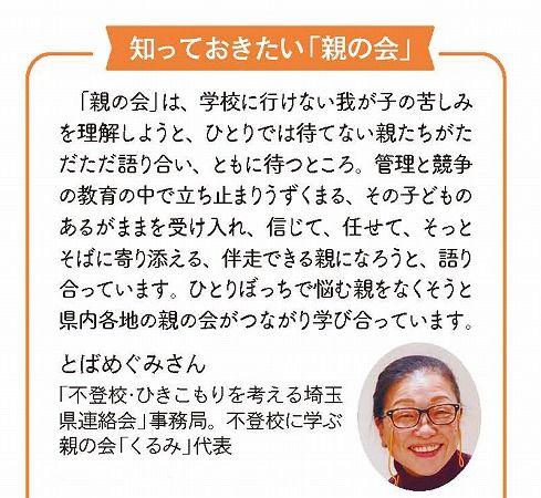 埼玉県や市町村の相談窓口の紹介や、不登校の子どもとその保護者を支援する民間活動団体・施設一覧、技能連携校・通信制高校の情報ほか、高校生活相談会やセミナーなど、さまざまな情報を幅広く掲載中。