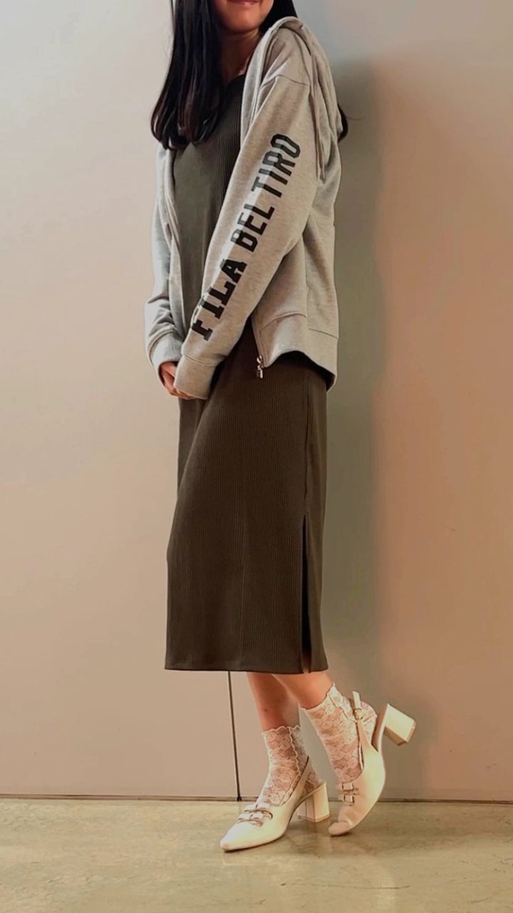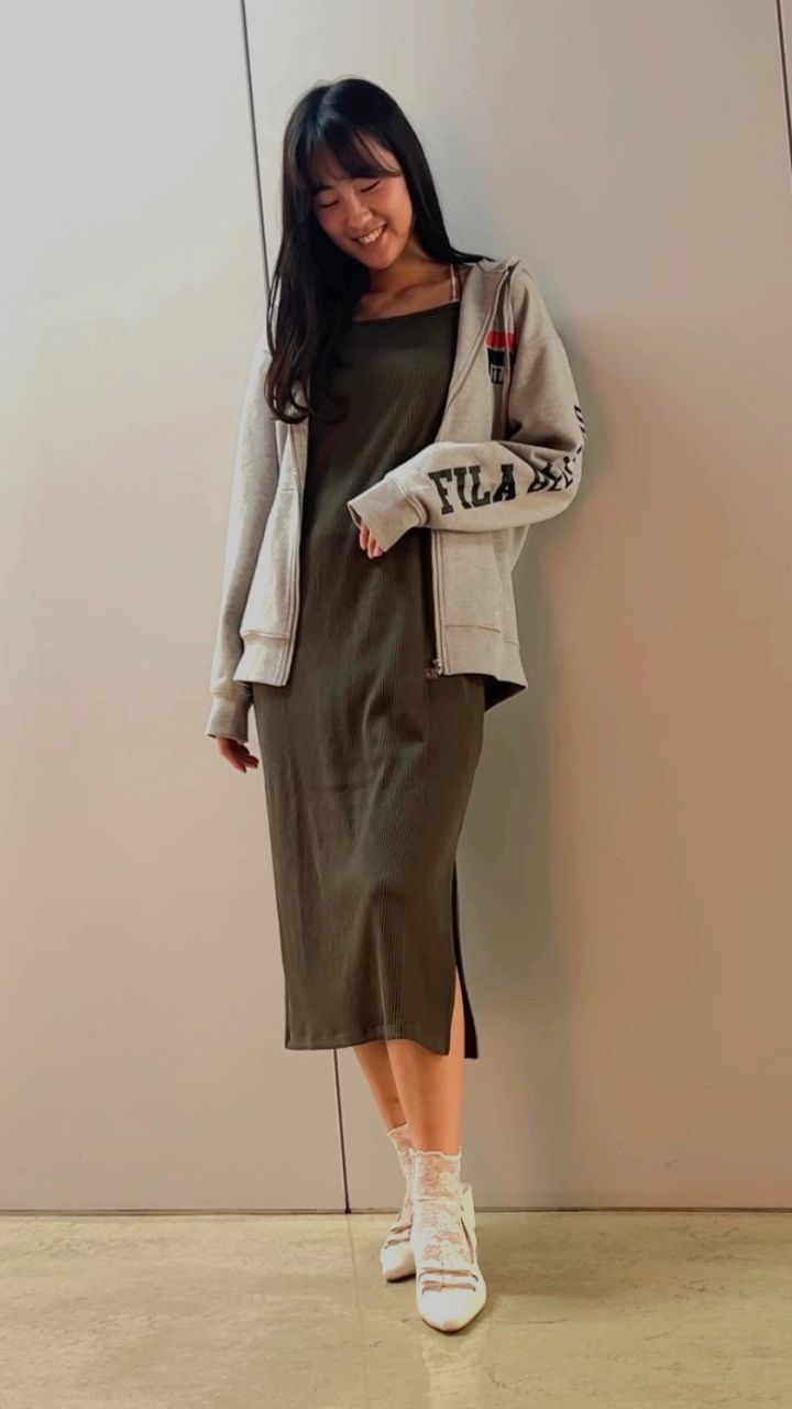キャミワンピースは着回し。ロゴ入りパーカー/FILA