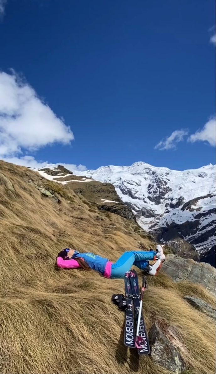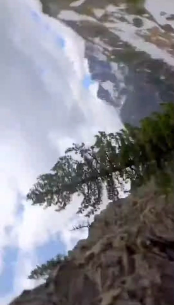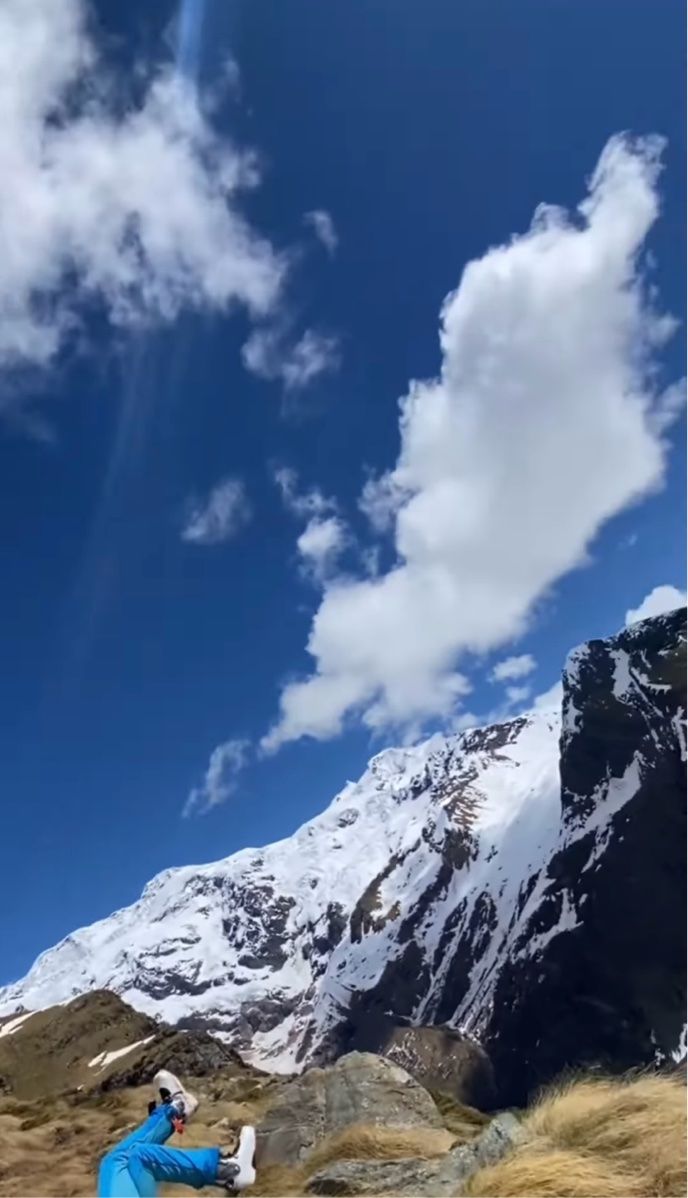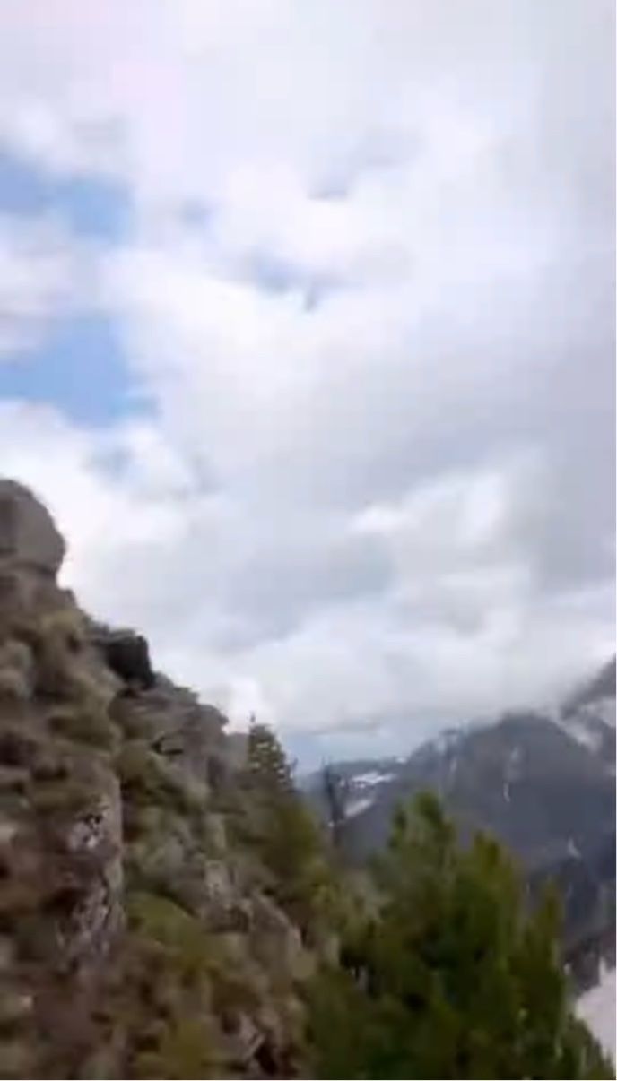 山の斜面には、寝転ぶ男性の姿が映し出されています。 ダイナミックな景色をバックに、スマホで動画を撮影しているところだったようです。