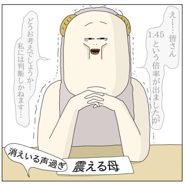勉強が嫌いで苦手な中学3年生の長女リコちゃん。塾には行かず親子で家庭学習を頑張り、初回の模試ではD判定だった第一志望の桃栗高校が最後にはA判定になりました。模試の結果を見て作戦会議をし、得意の国語で他をカバーしようと本番に向けての戦略も立て、公立高校の倍率発表の日を迎えました。緊張しながら発表を見たチャーさん、なんと桃栗高校の倍率が例年よりも高い1.45倍で衝撃を受けます。倍率確定後に一度だけ志望校の変更ができるため、変更するか否か迷ってしまいます。