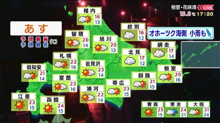 「天気回復☀オホーツク海側ではひんやり傾向に」