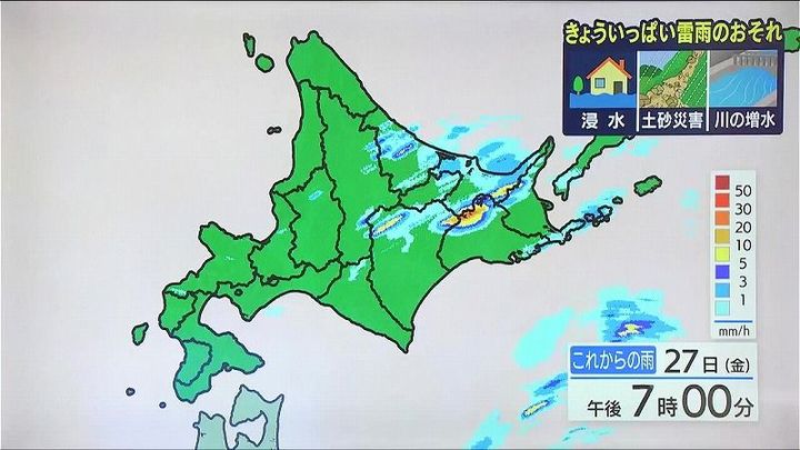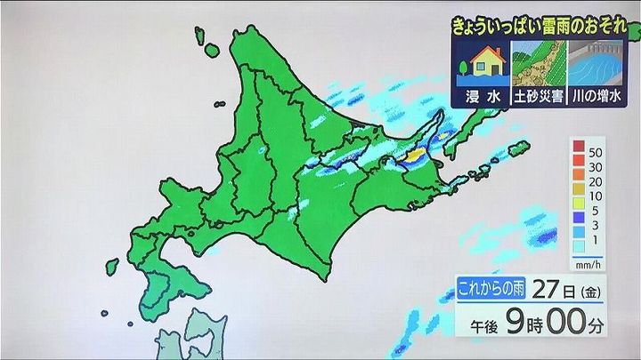きのう26日夜は、札幌でも雷の音で目を覚ましてしまったという方も多かったかもしれません。日付の変わる頃から雨が強まり、その後、活発な雨雲は東へ移動し、道央や道東などで大雨や洪水警報の出た時間もありました。