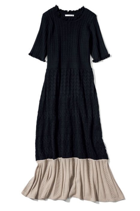 ニット素材&裾配色がメリハリのある美ラインをアシスト
