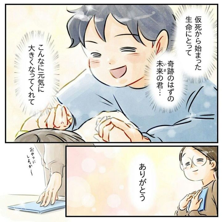 わが子の手をおそるおそる握り、感じたぬくもりは星田つまみさんにとって一生忘れられないものになったでしょう。出産直後7分間息をしていなかった我が子。その子が元気に泣く姿は星田つまみさんの何よりの宝物になったはずです。