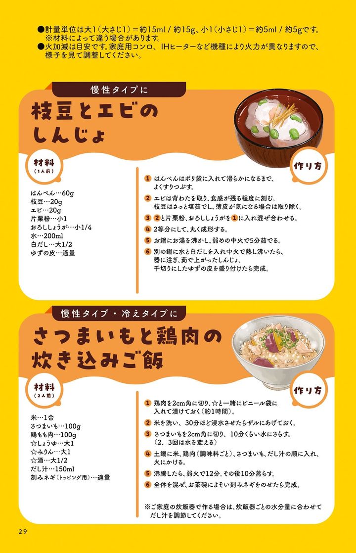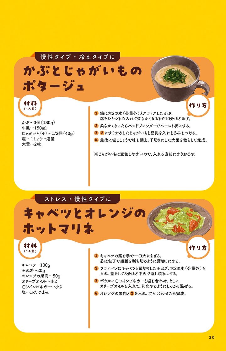 「冷えタイプ」「慢性タイプ」「慢性タイプ・冷えタイプ」それぞれの疲れた胃腸を労わるレシピです。生活養生のポイントや積極的に食べたい食材が分かりますよ!