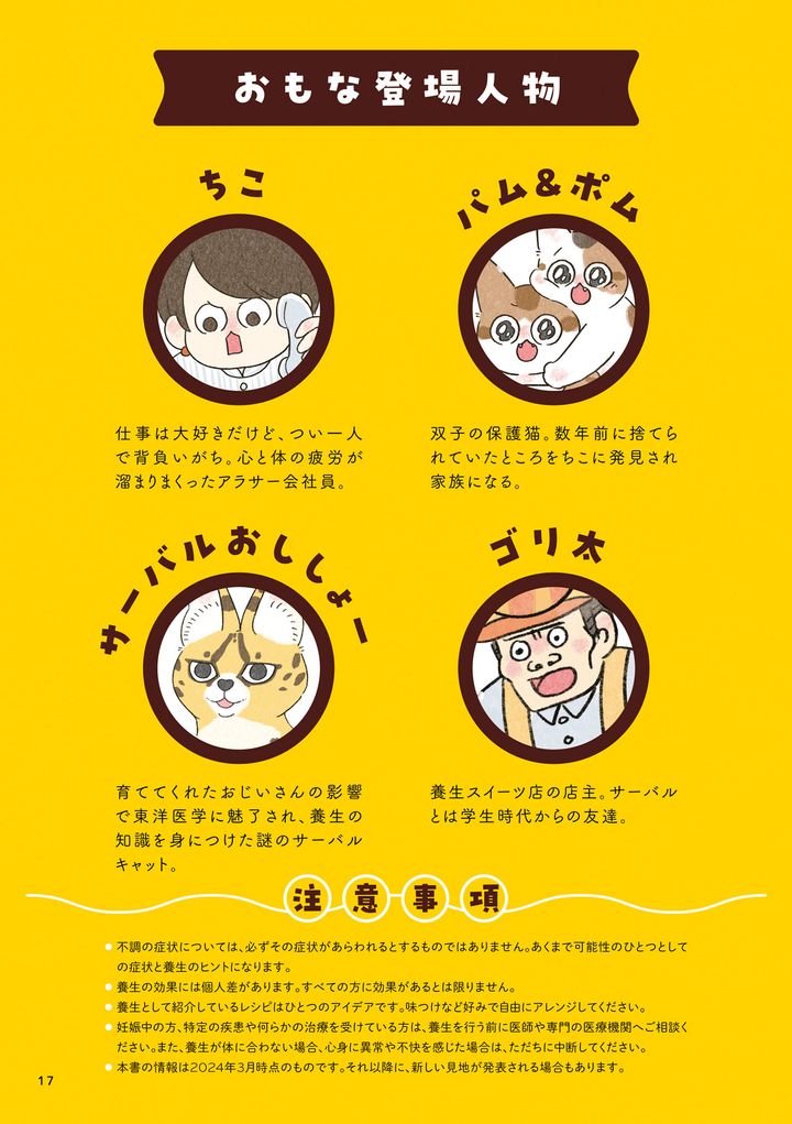 病気じゃないけど体調が悪い…。そんな「なんとなく不調」を毎日の食事でできる養生法で改善しませんか?「仕事、家事、育児、介護などで毎日忙しく、自分のことには構っていられない」など、疲れや不調をずるずると引きずっている人が多い世の中。特に、30~50代は心身のトラブルも起きやすいものですね。身近な食材だけで簡単に作れて、体を健やかにし、バランスを整える食事とセルフケアのヒントを紹介します。かわいい猫たちが登場する楽しいお話ですよ。