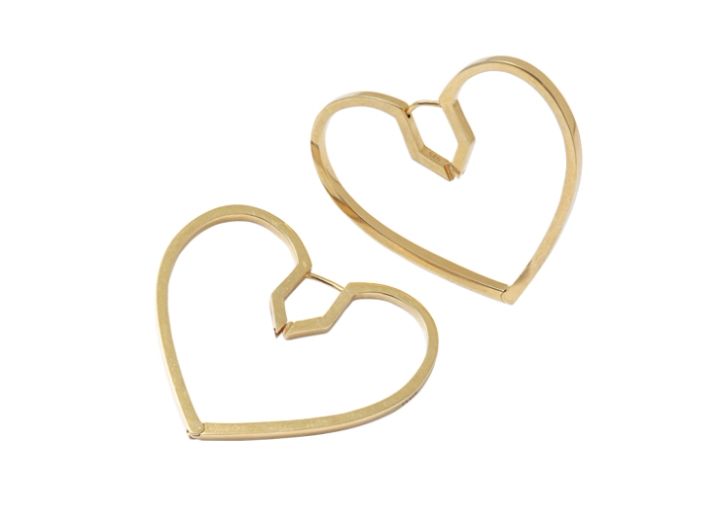 存在感があって、ずっと付けていても邪魔にならない逸品。ハートフープピアス(SV925 Gold Plating)¥37,400/プラウ