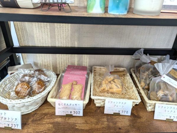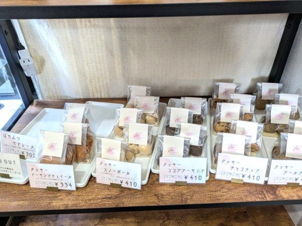 こちらの焼き菓子も、米粉でできています。一つ一つに貼られているお店のロゴシールも、ふんわり優しい色合いとデザインで、作り手の気持ちが伝わってくるようです。
