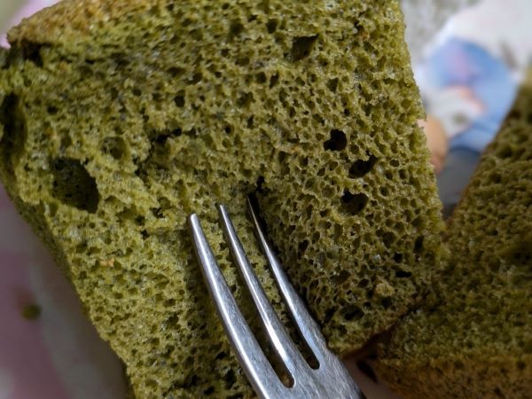 米粉は、オーナーさんが食感にこだわって選んだという厳選したものを使用しています。他にも、きび砂糖、無調整豆乳、米油、糸島市の板垣養鶏場の新鮮な卵を使用するなど、体が喜びそうな食材で作られている、シフォンケーキをいただいてみました。フワフワしているけれど、軽すぎずにモッチリしていて、食べ応えがあります!そして抹茶が贅沢すぎるくらいに入っているのも、嬉しいポイント♪甘さも控えめで、とってもおいしかったですよ。