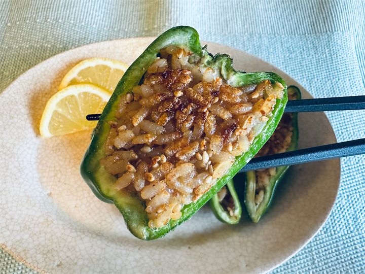 瑞々しさと香ばしさが大爆発♡「ごはん詰めピーマン」の材料と作り方
