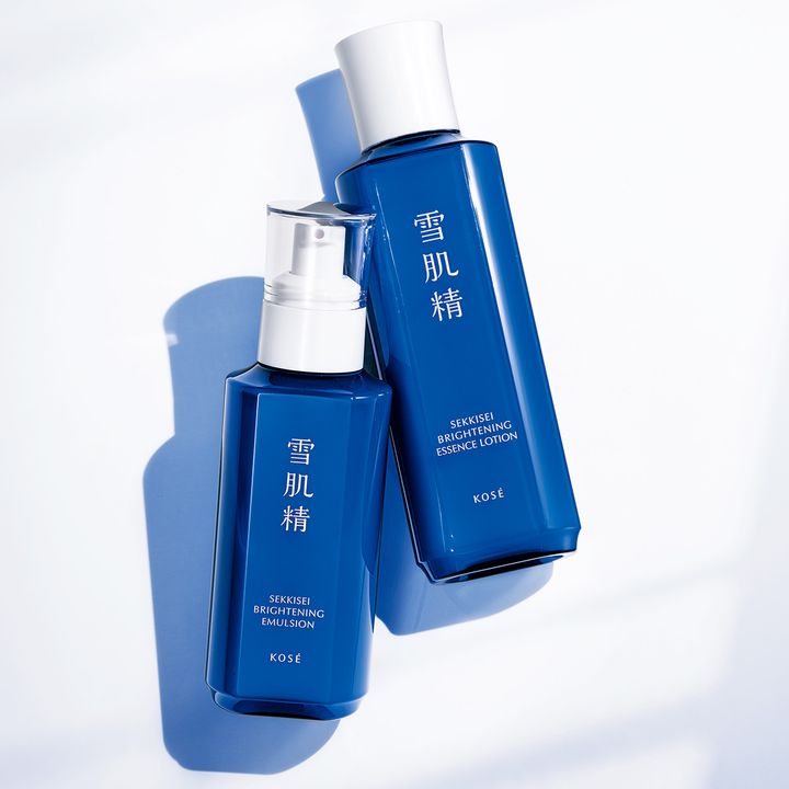 今年、40年目にして初めてリニューアルしたローションは浸透力が高く、前作よりも潤い感が高い仕上がりに。続いて7月にパワーアップして発売された乳液は、肌を柔らかくほぐしながら、夏でもべたつかず爽やかに使えるテクスチャー。右から/薬用雪肌精 ブライトニング エッセンス ローション 200㎖ ¥3,850、同 ブライトニング エマルジョン 140㎖ ¥4,180※ともに編集部調べ[ともに医薬部外品](ともにコーセー)