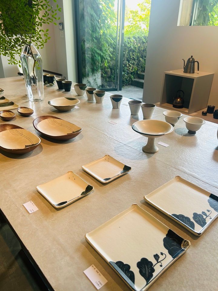 広大な敷地の中にはお洒落なショップやレストランがいくつもあります。gallery fumotoはGLOW世代のハートをくすぐる古今東西の職さんや作家さんの作品を取り扱うギャラリー兼ショップ。私が行ったときには大谷桃子さんという作家さんの企画展が開催されていました。お花やグリーンのモチーフが描かれた粉引きの器がとても素敵でした。他にも京都の伝統工芸である金網つじの焼き網や茶こし、ガラス作家さんの花瓶など「欲しいな!」と思う素敵なものがいろいろありましたよ。主にテーブルウェアやライフスタイル雑貨を扱うこじんまりとした可愛いお店でした。