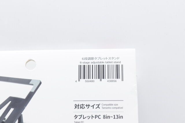 ダイソーをパトロールしていると、電気小物売り場で気になる商品を発見。見たことないくらい薄型のタブレット用スタンドで、その名も『6段調節タブレットスタンド』。お値段は¥330(税込)でした。