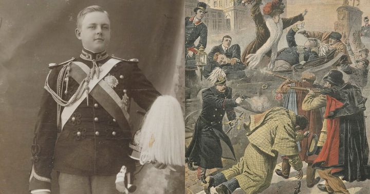 一行がリスボンの繁華街を通り、王宮に向かっていたそのとき、コメルシオ広場を通り過ぎたあたりで群衆から飛び出てきた2人の男に銃撃されたのです。