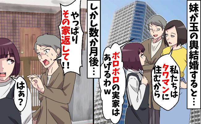 話を聞くと、どうやら妹の結婚相手であるイケメン御曹司は結婚詐欺師だったようで、タワマンの契約は半年間だけだったそうです。御曹司はある日突然全財産を持って姿を消し、両親と妹はマンションの管理会社から追い出されたとのこと。