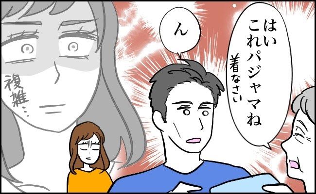 夫はすでに寝巻きを着ていましたし、わざわざ着替える必要はないのにな……と複雑な気持ちになりながら、夫と義母の様子を見守っていると、夫は「わかった」と言ってパジャマを受け取り、着替え始めました。