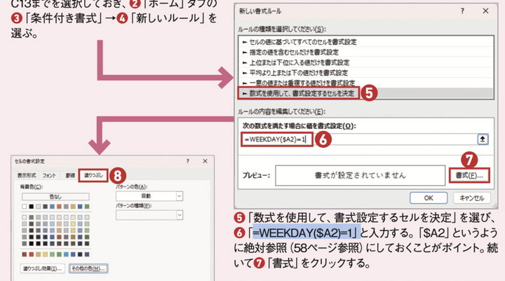 誌面通りに進めていくと、新しい書式ルールから⑤のルールを選択できるはずなのですが……