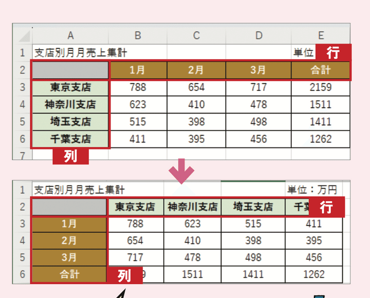 ぜひとも会得したい時短技がありました。それが「行と列を瞬時に入れ替える」です。本当は上記のように入れ替えたかったんですが……