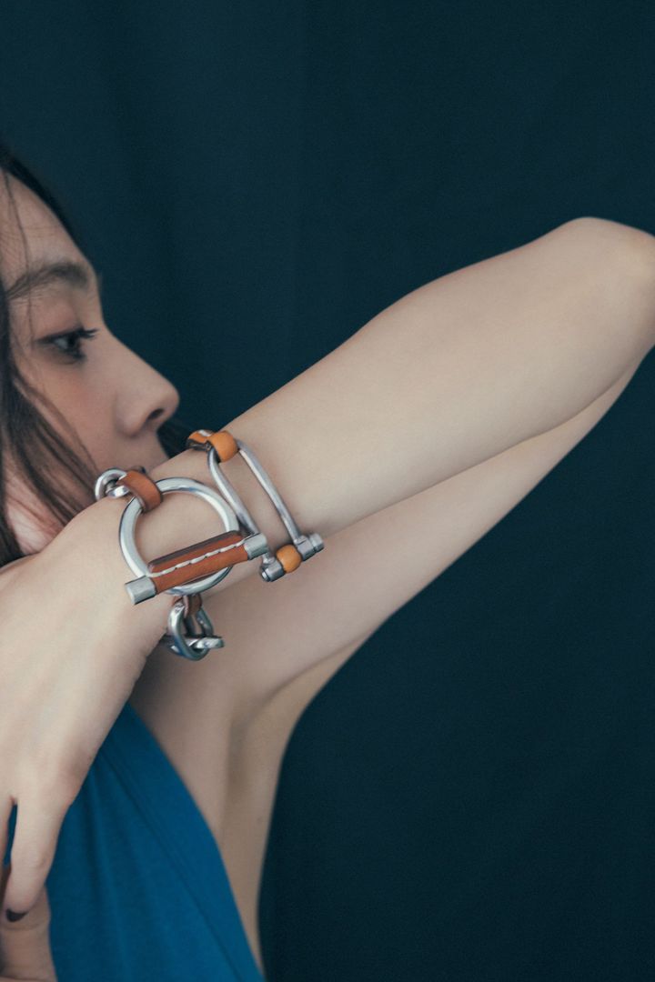 レザーブレスレット¥18,700チェーンブレスレット¥26,400(ともにCXC/アマン)タンクトップ¥7,700(オニット×シップス/シップス インフォメーションセンター)サンダル¥2,970(イパネマ/シードコーポレーション)たすき掛けしたシャツ¥27,500(エッフェ ビームス/ビームス ハウス 丸の内)デニムパンツ¥15,180(マウジー/バロックジャパンリミテッド)バッグ¥14,300(ジェセフ アンド ステイシー/クイーポ)ピアス¥36,300(ジジ/ホワイトオフィス)