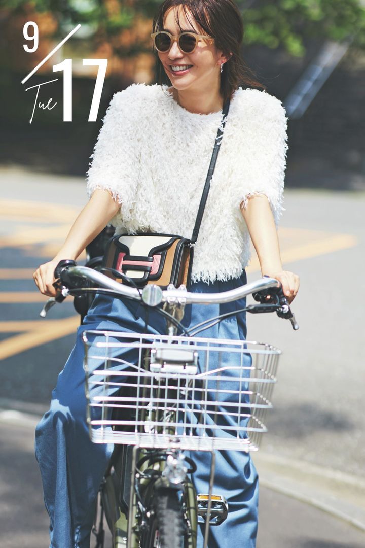 シャギートップス¥16,500(サロン アダム エ ロペ)タックパンツ¥20,900(ザ シンゾーン/シンゾーン ルミネ有楽町店)サングラス¥25,300(RHC/RHC ロンハーマン)ピアス¥91,300(ウノアエレ/ウノアエレ ジャパン)バッグ¥152,900(ピエールアルディ/ピエール アルディ 東京)ミュール¥64,900(ペリーコ/アマン)