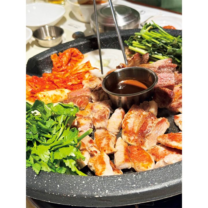 運転手さんお墨付きのサムギョプサル屋は店内も広く個室あり。駅近でローカルのお客さんも多い。
