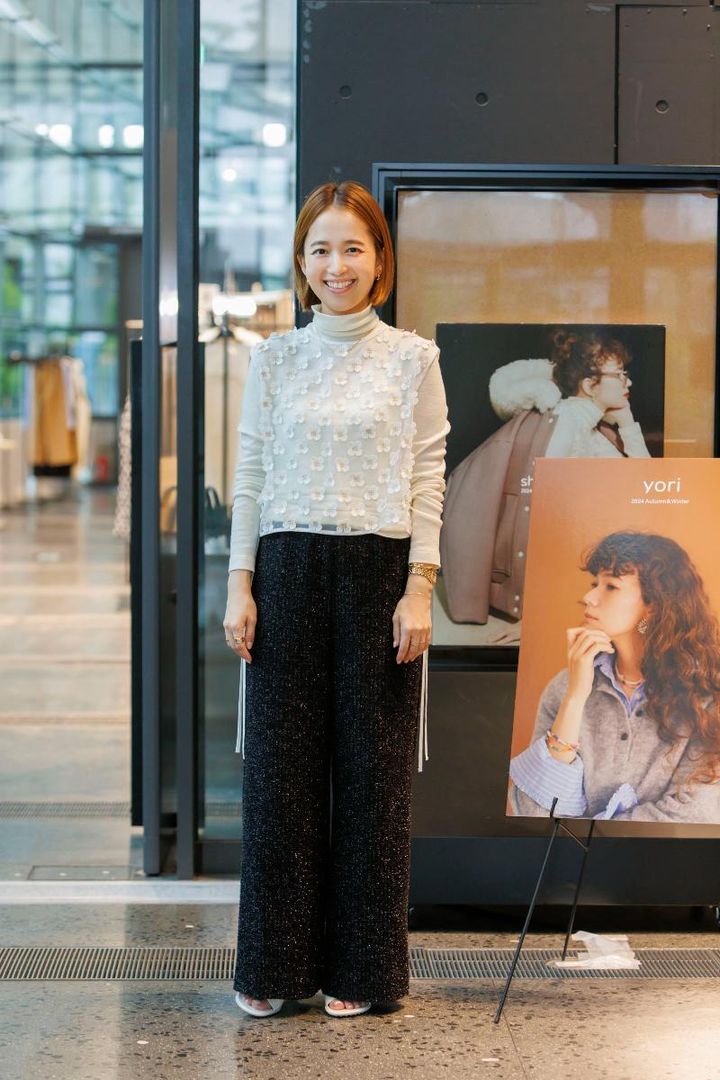 実はyori受注会に参加するママたちが密かに楽しみにしているのがディレクター高橋誉子さんと外村久美子さんのジュエリー使い。VERY本誌でもたびたび取り上げられている2人のジュエリーコーデをスナップさせてもらいました。今回は外村さん編をご紹介します。