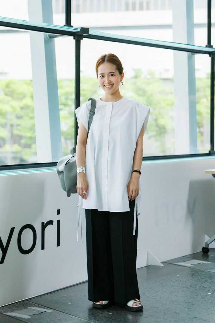 ring/CHANEL , MIO HARUTAKA bracelet/Tiffany & Co. pierced earrinigs/BOTTEGA VENETA watch/CHANEL tops , pants/yori bag/LOEWE sandals/TOD’S