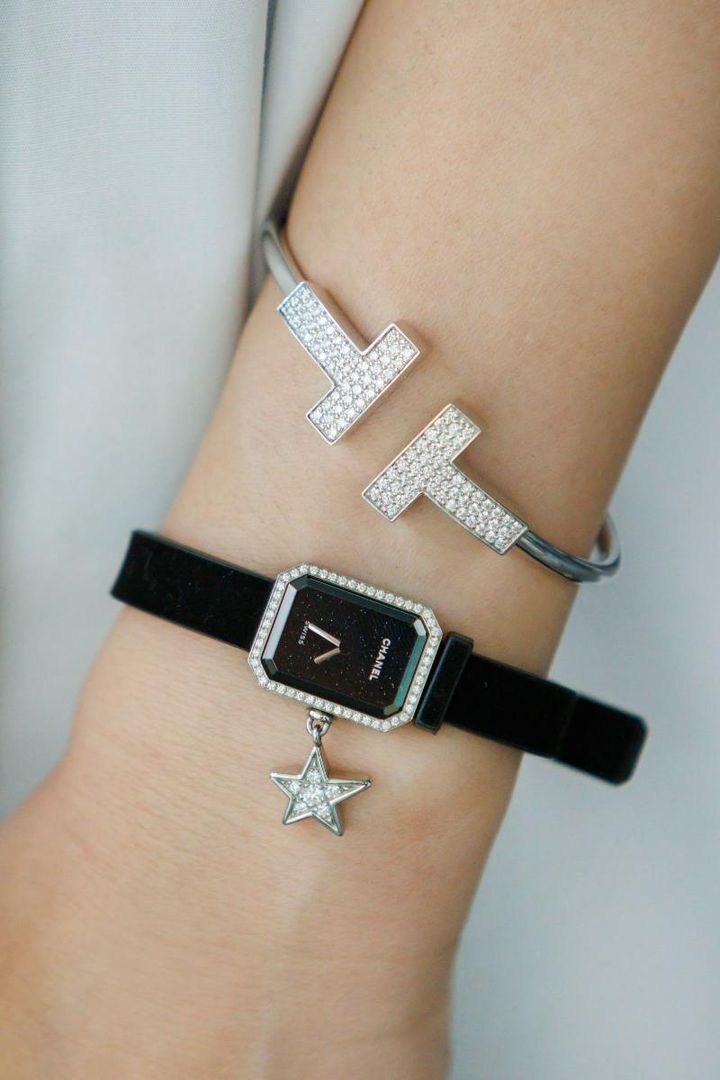 ring/CHANEL , MIO HARUTAKA , Tiffany & Co. bracelet/vintage necklace/YON watch/Cartier pierced earrinigs/CHANEL tops , pants/shirocon bag/Goyard sneakers/CELINE