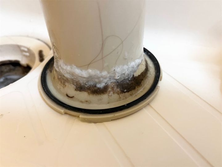 シャワーで流しただけでは排水口の中は【ビフォー】とほぼ変わらず、ヘドロのようなものが浮いています…。剥がれた汚れが溶け切らずに残ってしまったようです。こ、これは10か月掃除をサボったツケが回ってきてしまいました!