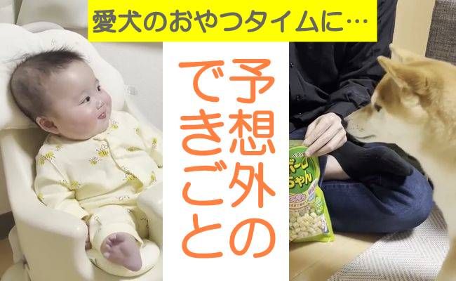 愛犬のおやつタイムに同席した生後5カ月の赤ちゃん。柴犬がおやつのボーロをパクッと食べると、予想外のできごとが起きて…