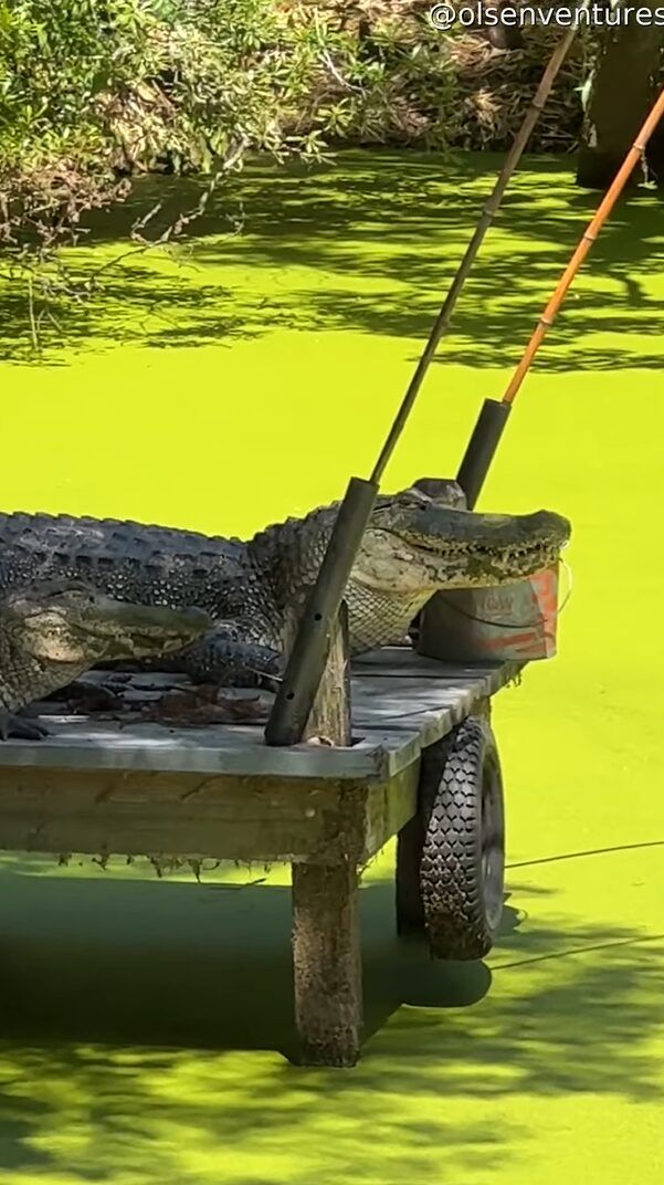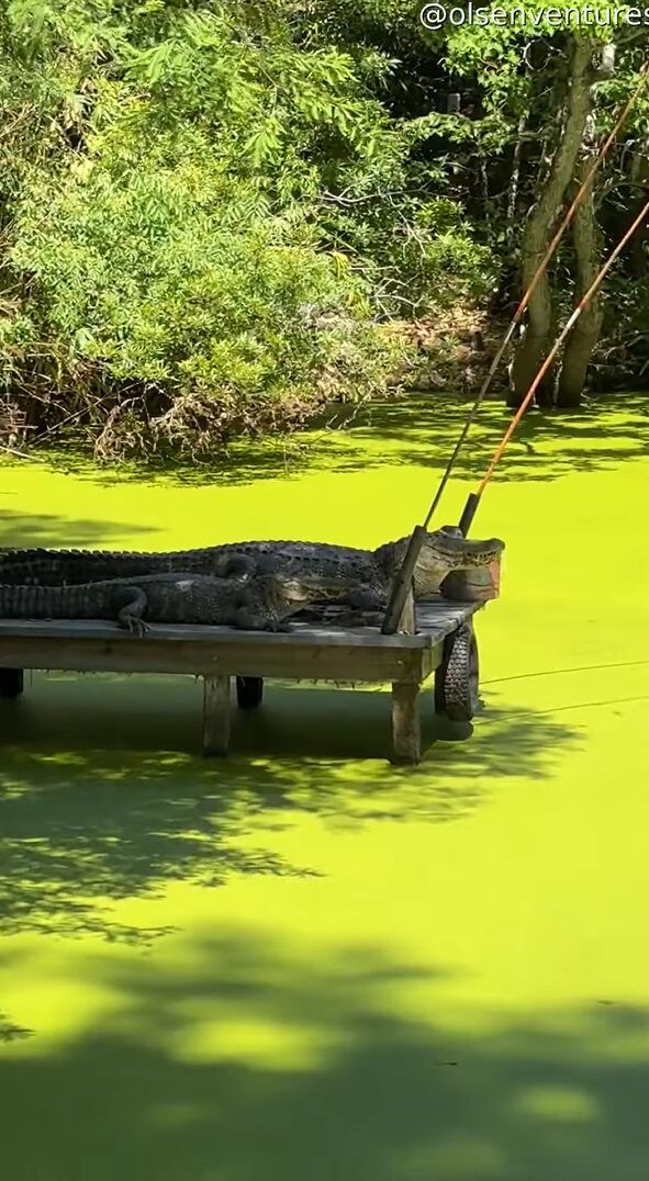動画が撮影されたのは、アメリカ・ルイジアナ州。 池のほとりに設けられた釣り場の様子を捉えた映像です。