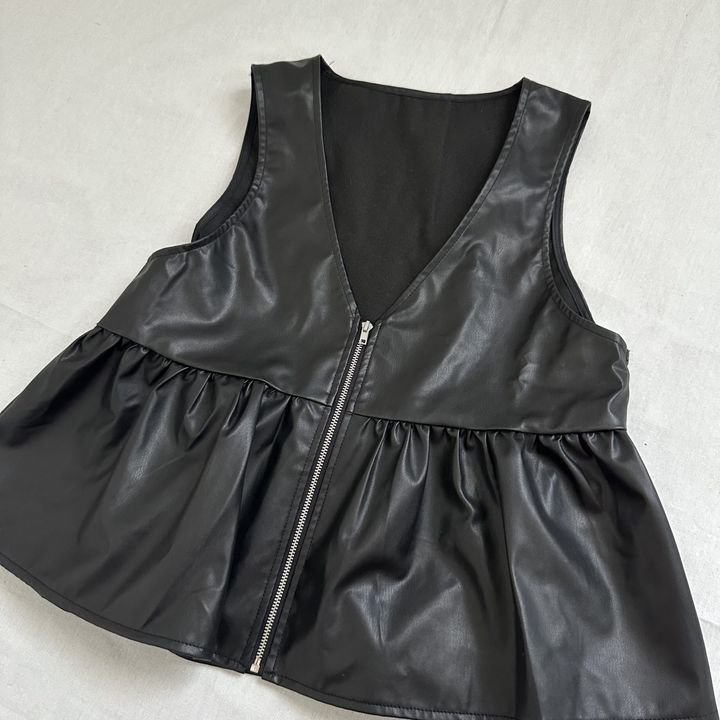 ただのレザー調ベストではなく、ペプラムデザインになっているのがポイントです。 <商品情報> 商品名:ジップペプラムレザーベスト サイズ:FREE カラー:ブラック 品番:pp169 価格:¥1,699(税込)
