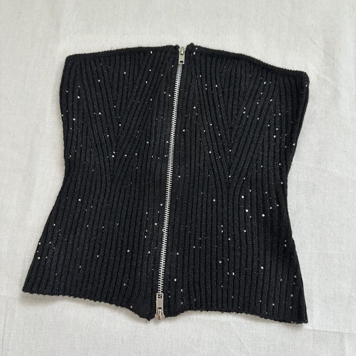 スパンコールとラメのきらめきがかわいいビスチェです。 気分やコーデに合わせてダブルジップの上げ下げを調整でき、トレンド感もばっちりです。 <商品情報> 商品名:スパンコールラメダブルジップニットビスチェ サイズ:FREE カラー:ブラック 品番:dh1318 価格:¥500(税込)