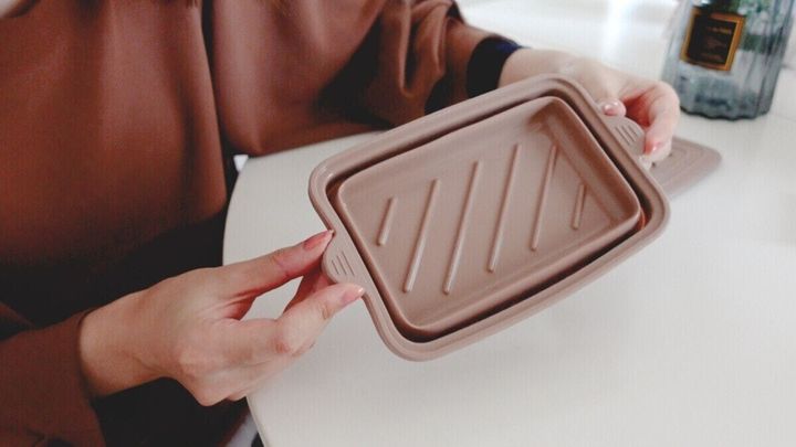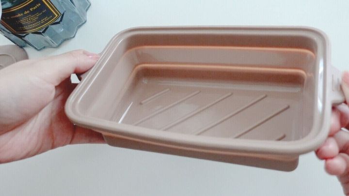 今回ご紹介するのが、ダイソーの新商品「シリコンスチーマー」です。火を使って調理するのが面倒なときにもラクにレンジ調理できる、主婦・夫の味方のレンジ調理アイテム。レンジ、オーブン、食洗器使用可能です。そして、なんといっても折りたたむと薄くなるので、使わないときはコンパクトになり収納に場所をとりません。