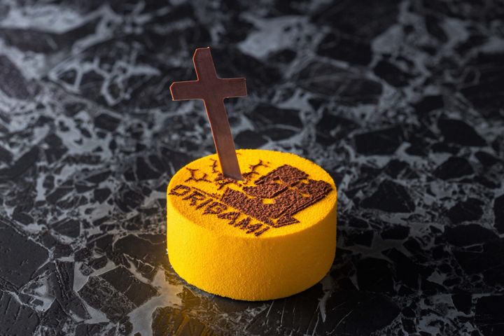 トゥーム ¥756かぼちゃのピュレを練り込んだムースケーキの中にキャラメル味のクレームブリュレとコーヒー風味のガナッシュを入れた、十字架が印象的なケーキ。コーヒーのほのかな苦みが、かぼちゃの上品な甘みを引き立てる相性抜群の組み合わせです。