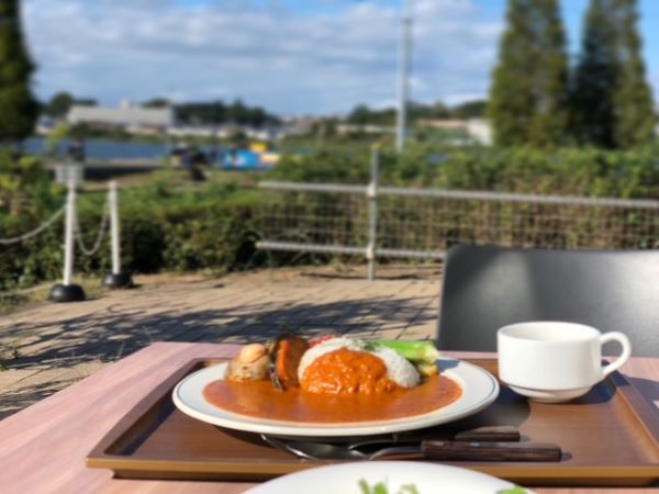 外のテラス席でいただきました!青い空と手賀沼を望みながらいただくランチは最高です。