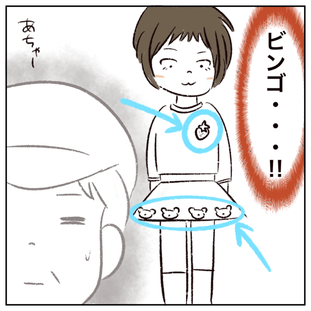 まるさんのクラスメイトのお母さん前田さんに声をかけられたまるさんのお母さん、さなかちゃんを叱ったという話からどんどん発展して、前田さんはさなかちゃんを出禁にしたと話しました。おやつを食い荒らす、服がなくなる、と共通点ばかりの2人。ふと「どんな服がなくなった?」とたずねたまるさんのお母さん、前田さんがなくなった服の特徴を並べると、みかん狩りの当日、さなかちゃんが来ていた服がビンゴ!だったのです。