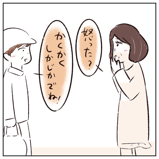 まるさんのクラスメイトのお母さん前田だんに声を掛けられたまるさんのお母さん、「最近さなかちゃん、ずっと家に来てる?」と聞かれ「この前叱ったから毎日は来ないと思う」と伝えると「怒った?」とたずねられ、みかん狩りの時のことを話しました。