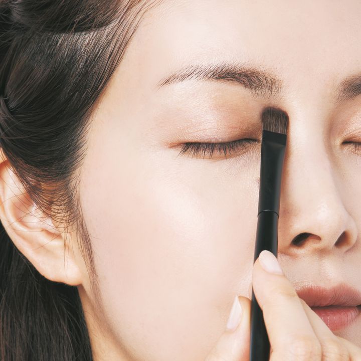3.ブラシに残ったシャドウで眉頭から目頭の延長線上までノーズシャドウを入れ、自然な陰影をつける。