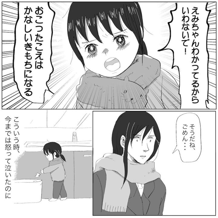 そう言われて謝罪を口にしたニシカタさんは、こういうとき、今まではすぐに泣いていたえみりんちゃんが、いつの間にか自分の気持ちを言葉で説明できるようになっていることに気づきました。