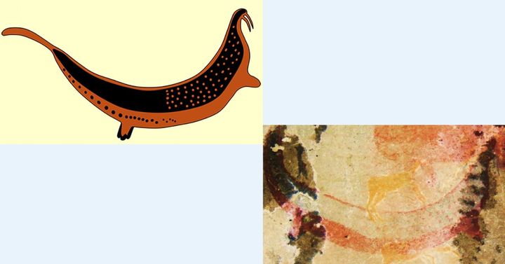 人類が見たことのないはずの古生物の姿が岩壁に描かれていたようです。