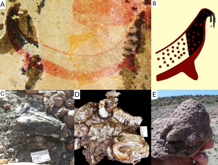 岩絵と現地周辺で発掘されたディキノドンの化石/ Credit: Julien Benoit et al., PLOS ONE(2024)