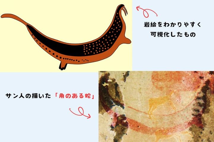 つまり、サン人が1821年から1835年に描いた岩絵「角のある蛇」が本当にディキノドンなら、オーウェンより以前に本種を発見していたことになります。