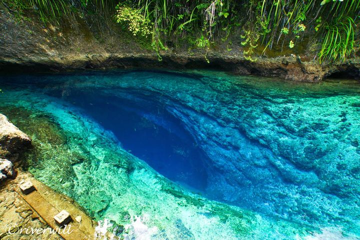 その正体は、山からの豊富な地下水が、地下深くの水脈を経て海へとつながる水中洞窟から大量に湧き出し、川を成したもの。