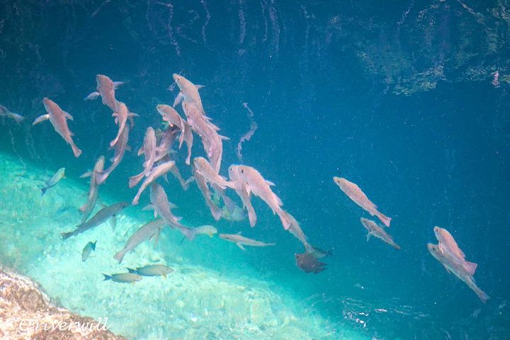 ちなみに、上記画像は水中からではなく陸上から撮ったもの。驚異的な透明度で、魚たちがまるで宙を舞っているかのようですよね。