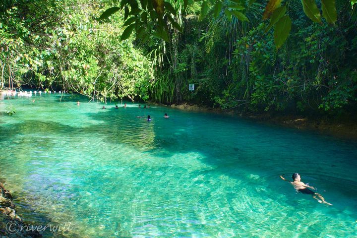 川といっても、水源から河口部のヒナトゥアン湾まで約270mと短く、真水と海水が入り混じった汽水域の川のため冷たくしょっぱいのも特徴的です。