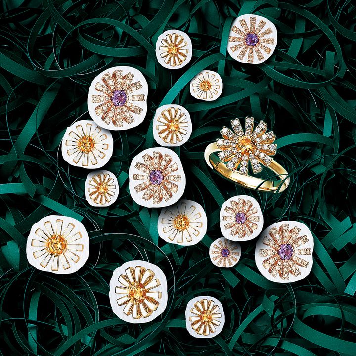 エンリコ・グラッシ・ダミアーニがイタリアの宝飾産業の中心であるヴァレンツァで工房を立ち上げたのは1924年のこと。今年100周年を迎えたメゾンのアイコン〝マルゲリータ〟は、イタリア国民が愛してやまない王妃マルゲリータ・ディ・サヴォイアに由来しています。宝飾品を愛し、公式の場でいつも素晴らしい宝石を纏っていた王妃。今で言うトレンドセッターであった彼女を逐一報道するために週刊誌『マルゲリータ』が創刊され、その美しさは広く人々に伝えられ注目を集めたそう。また、王妃は芸術に対する情熱を持ちメセナ活動(文化や芸術を支援すること)においても国民の尊敬を集め、あらゆる社会階級の人たちから愛されていました。そんな素晴らしい王妃の名を冠した〝マルゲリータ〟は、まるで肌の上にマーガレットの花を纏ったようにエレガントなジュエリー。そして、どんなに凝ったデザインでも着け心地や肌触りに妥協しないのは、身に着けたときの喜びをメゾンが大切にしているから。王妃の天性の優美さを表現しているという〝マルゲリータ〟。そのデザインに込められた愛と歴史を感じて、投資したいジュエリーです。