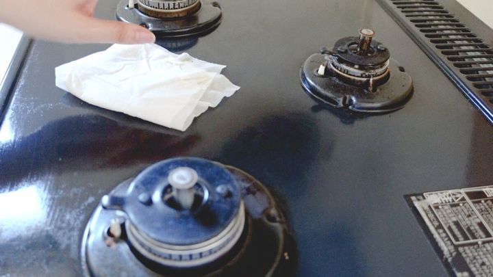 最後にコンロ掃除に。そのままゴミ箱へポン。